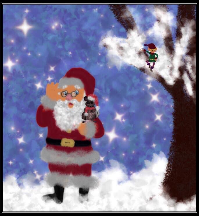 Der Weihnachtsmann, der jetzt genau vor Baltazaar steht...tippt dem Mäuserich behutsam auf den dicken Bauch.