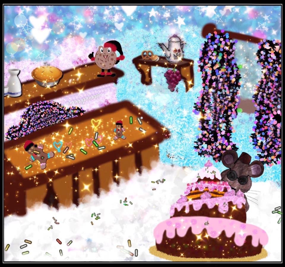 Ja, das war eine wirklich gute Idee, denn schließlich steht in der Bäckerei ganz hinten in einem vom Goldlicht umrandeten Regal die *Weihnachts-Schokoladen-Torte*.