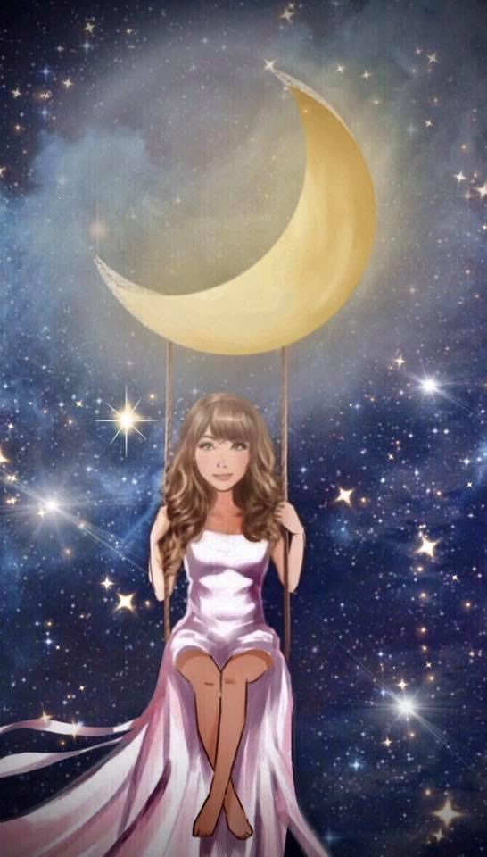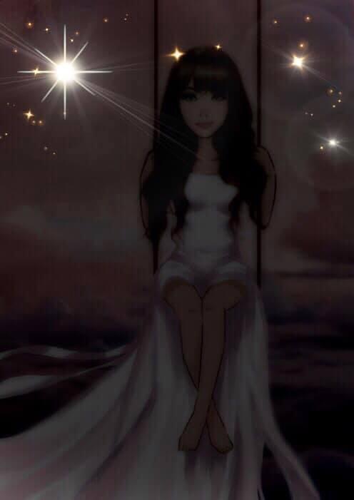 Auf einer Schaukel im Garten sitzt eine Seele,deren Mensch bereits tief und fest schläft.